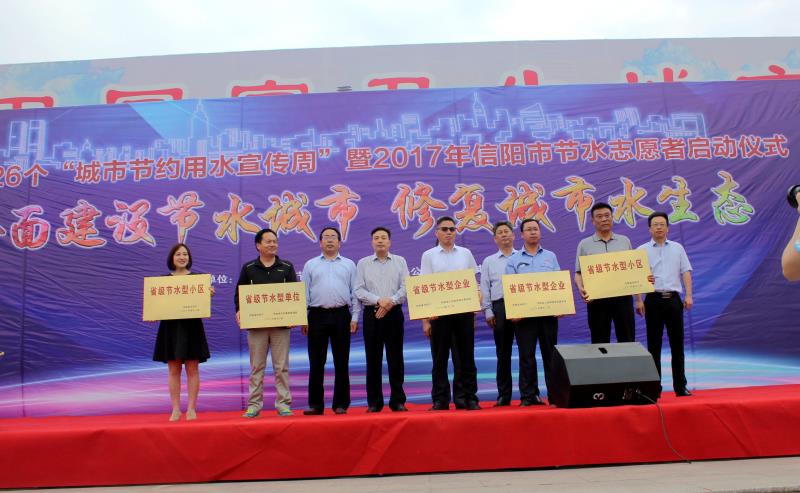 活动中首先对获得“2016年省级节水型单位(企业、小区)”荣誉称号的我市5家用水单位给予了表彰和授牌;对由信阳市节水办、信阳晚报社、信阳师范学院文学联合社举办的第一届节水征文获奖者进行了表彰,获奖人员现场朗诵了获奖文章。启动仪式上,信阳市城市综合管理执法局黄均池副局长向节水志愿者代表授旗。节水志愿者代表宣读了开展节水志愿者服务倡议书,他们将以自身实际行动节约用水,珍惜水资源,做勤俭节约风尚的传播者、实践者、示范者。