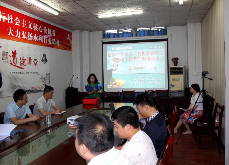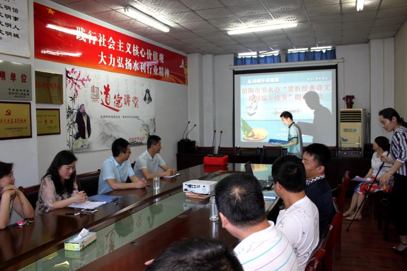 为传承优秀传统文化,营造浓厚节日气氛,5月27日上午市节水办举办“赏析经典诗文喜迎端午佳节”朗诵活动,全办干部职工参加了此次活动,共庆端午佳节。