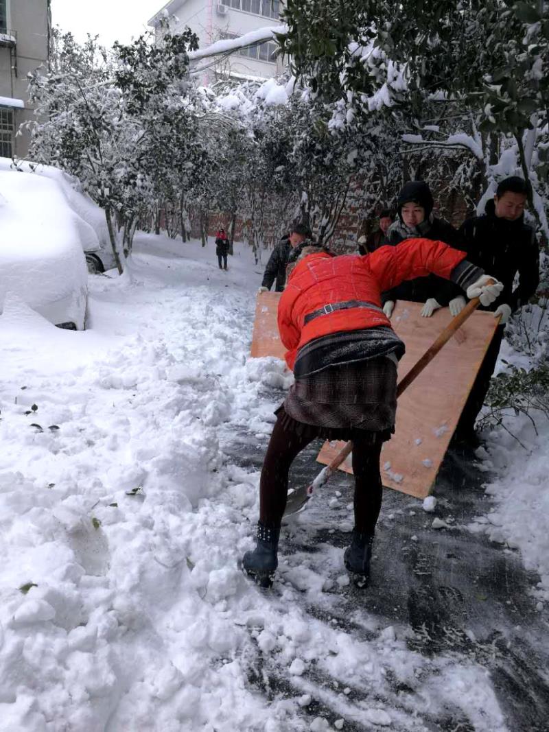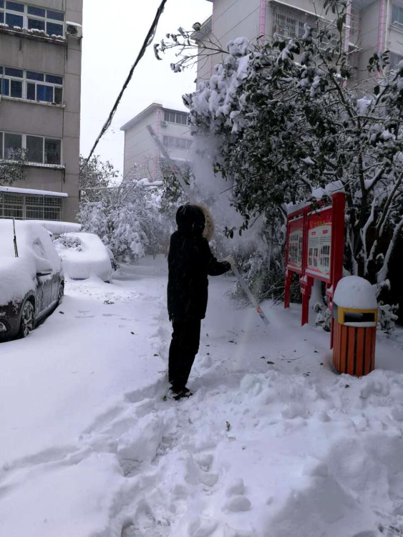 全办人员顶着还在持续的暴雪手拿扫把、铁锹等工具,对周边积雪路面进行清扫。由于积雪很深,断枝过多,这给清扫带来了一定的难度,但寒冷的天气挡不住同志们扫雪的激情,凛冽的寒风更是激发出大伙劳动的热情。经过2个多小时紧张有序的劳动,单位门前、家属院以及周边的道路被清理干净,为大家的方便出行提供了保障,展现出了我办干部职工团结协作、上下一心的良好风貌。