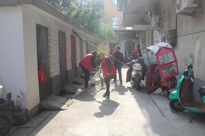 当天,随处可见红色的身影穿梭于我办家属院中,有的清扫道路、有的擦拭栏杆、有的拾掇垃圾......对单位家属院各个角落进行全面清扫,针对卫生死角重点进行清理。通过大家的共同努力,院内外面貌焕然一新。