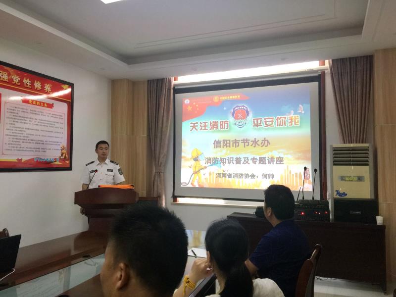 5月14日下午,市节水办举办消防安全知识讲座,邀请了河南省消防协会宣讲教员何帅同志授课,党支部班子成员和全办在职人员参加培训活动。