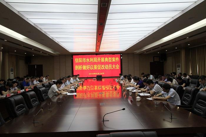 会上播放了市财政局郝长云案专题警示教育片;与会人员重温了入党誓词;驻水利局纪检监察组组长谢复琼传达市纪委监察委2018年以案促改工作要点,并通报了云南省大理州水利系统腐败窝案串案案情;局党组成员、副局长胡传银宣读了《市水利局以案促改工作方案》;重点岗位人员作了表态发言。
