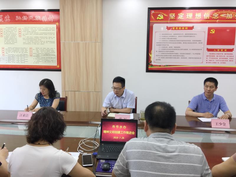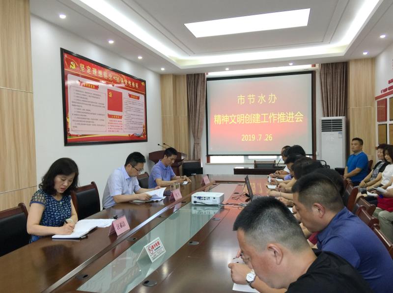 为进一步推进单位精神文明创建工作,塑造良好节水队伍形象,7月26号下午,市节水办召开2019下半年文明单位创建工作推进会。会议由办党支部书记、主任张军主持。全办职工参加会议。