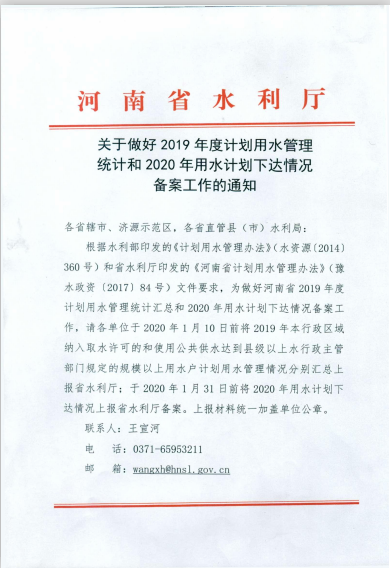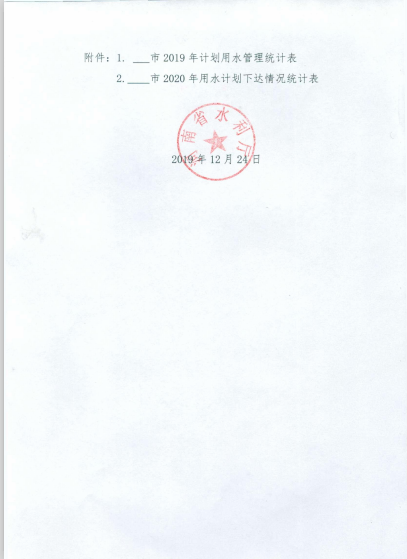关于做好2019年用水计划统计和2020年用水计划备案的函