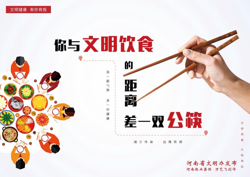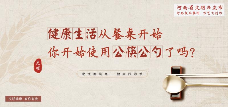 为认真贯彻落实习近平总书记在抗击新冠肺炎疫情中关于“提倡文明健康、绿色环保的生活方式”重要指示要求,进一步巩固我市新冠肺炎疫情防控成效,保障人民群众身体健康,积极培育文明健康、绿色环保的生活方式,提高广大群众的文明素质和自我保护能力,着力纠正不文明用餐习惯,切断病菌在餐桌上的传播途径,减少交叉感染风险,我们倡议:使用公筷,文明用餐,健康生活。