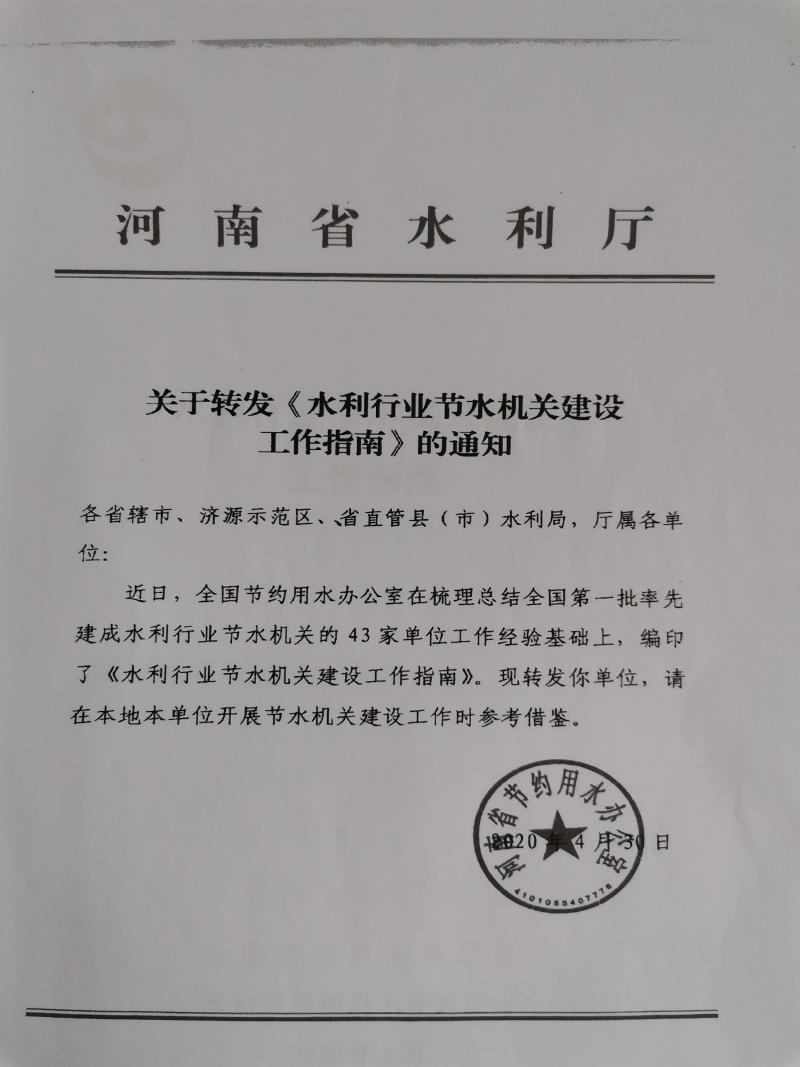 关于转发《水利行业节水机关建设工作指南》的通知