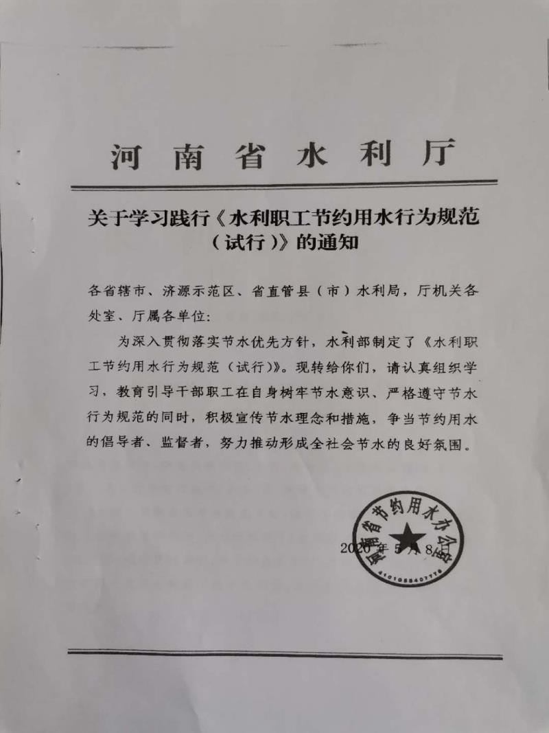 关于学习践行《水利职工节约用水行为规范(试行)》的通知
