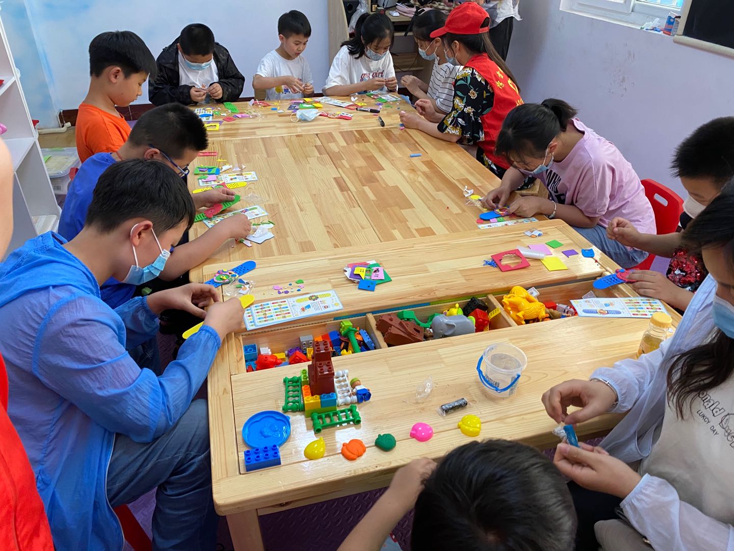活动首先由节水志愿者和社区志愿者给参加活动的孩子们发放DIY手表的材料包,并向他们讲解制作过程,随后又一起动手制作,让孩子们边做边学,边做边悟,锻炼自己的动手能力,展现自我、体验成功的喜悦。