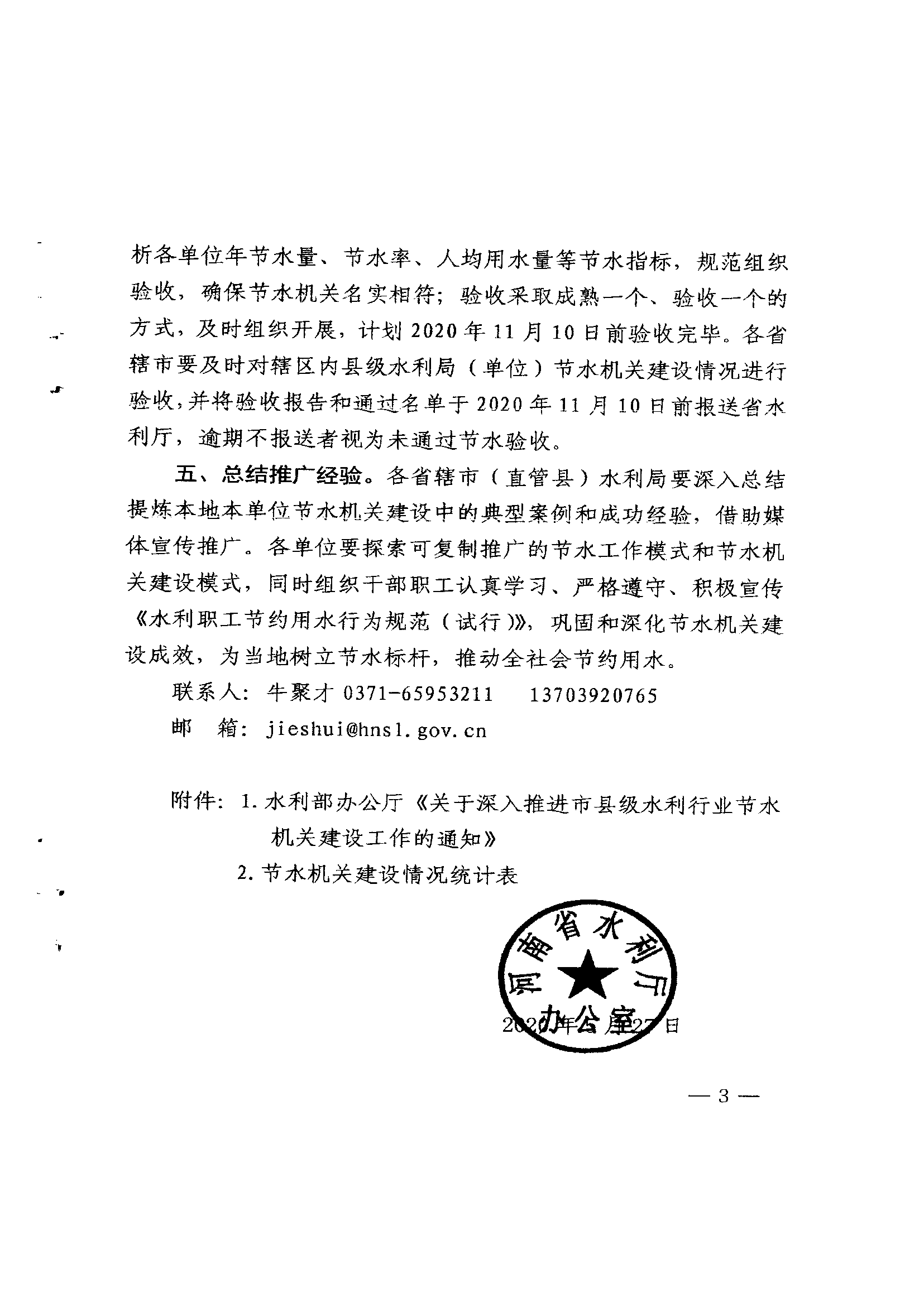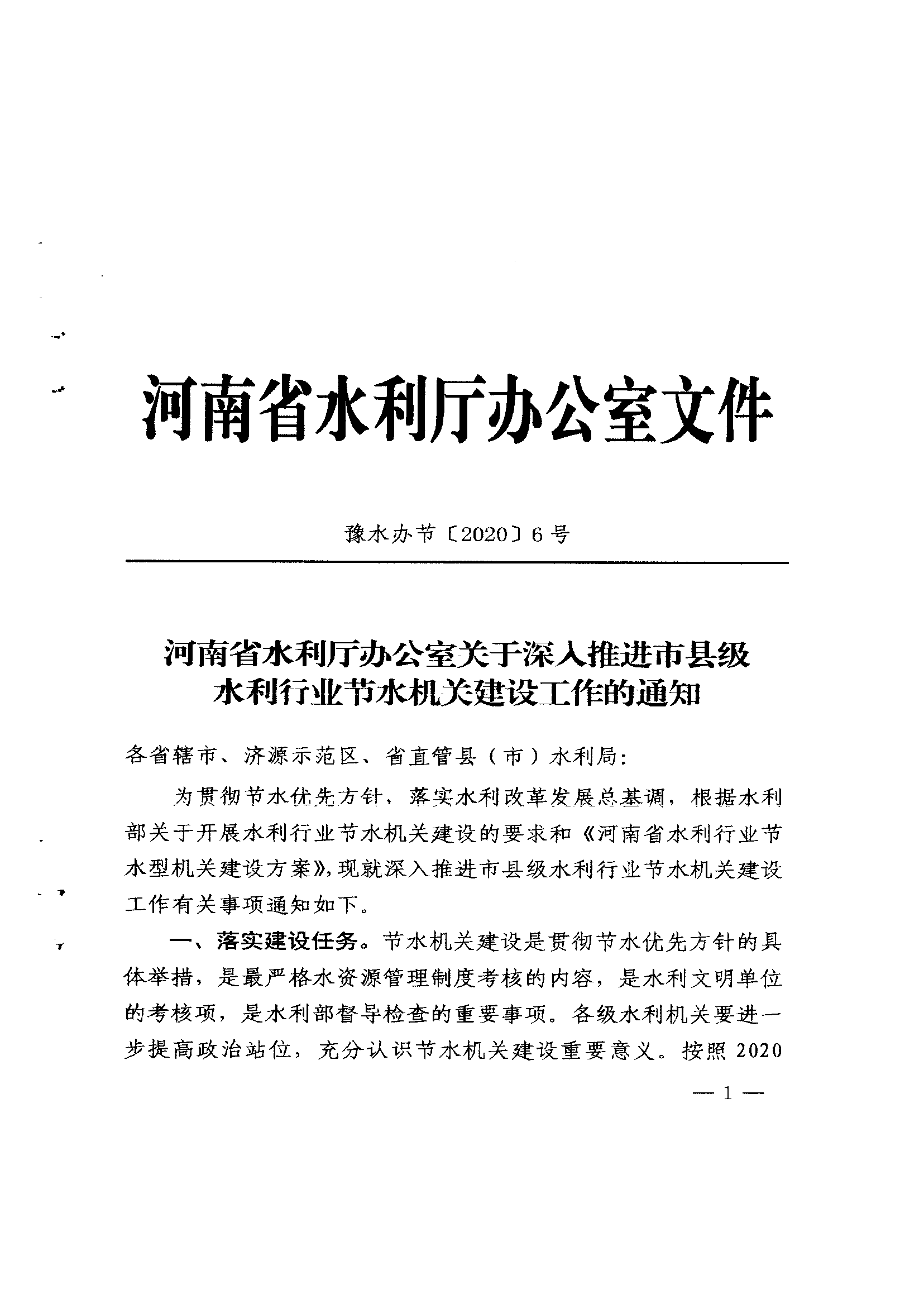 河南省水利厅办公室关于深入推进市县级水利行业节水机关建设工作的通知