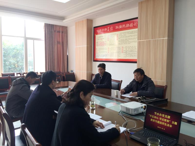 12月6日下午,市节水办召开“不忘初心、牢记使命”主题教育专题组织生活会,办党支部班子成员参加会议。市水利局“不忘初心、牢记使命”主题教育第四指导组组长许永征带队到会指导,办党支部书记、主任张军在会上代表办党支部对领导班子主题教育学习落实情况进行剖析。