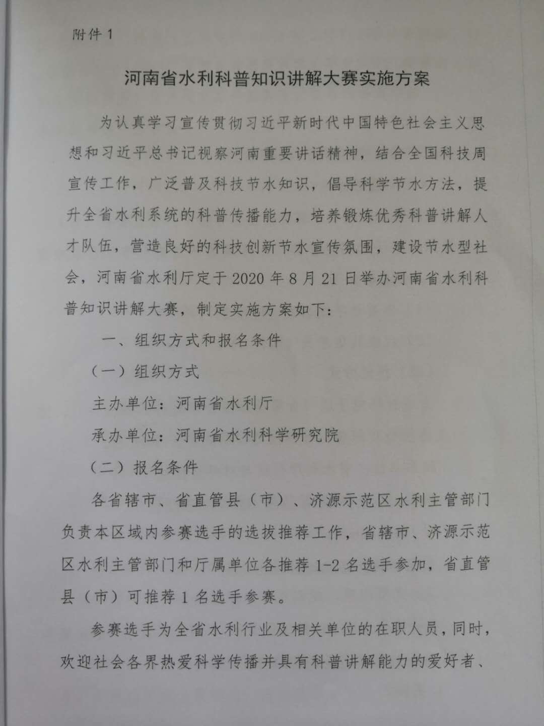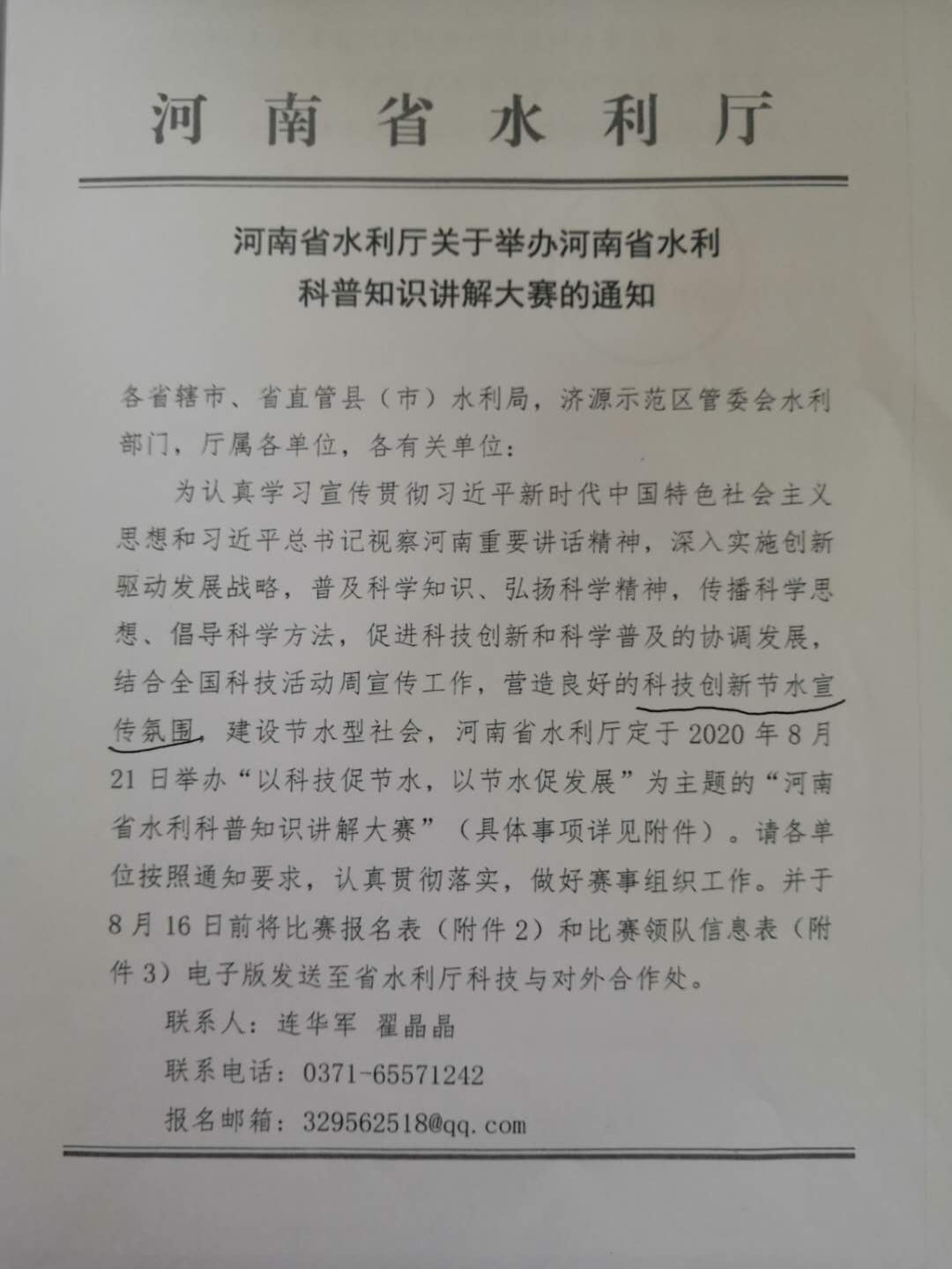 河南省水利厅关于举办河南省水利科普知识讲解大赛的通知