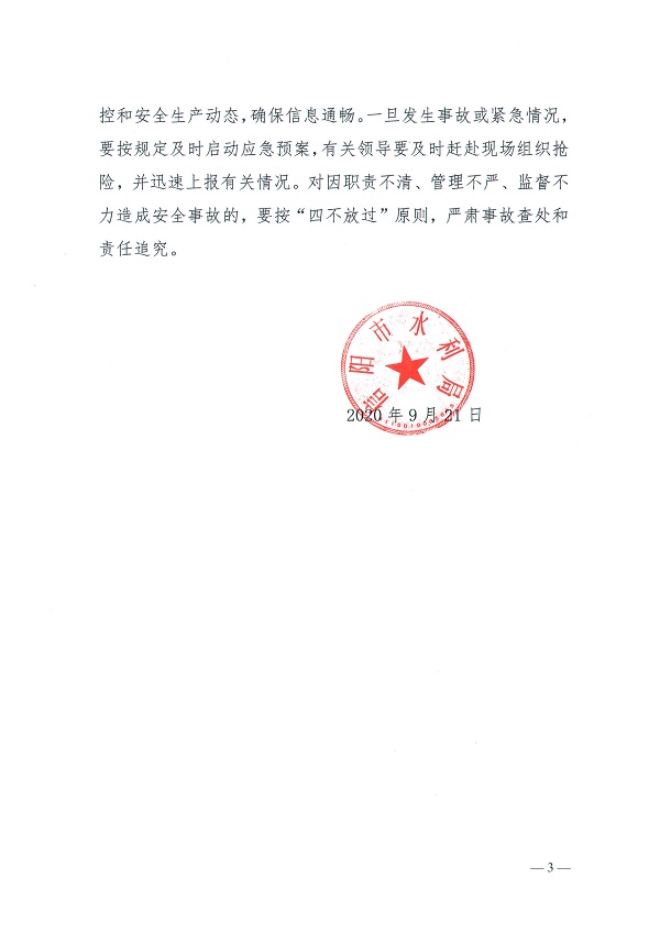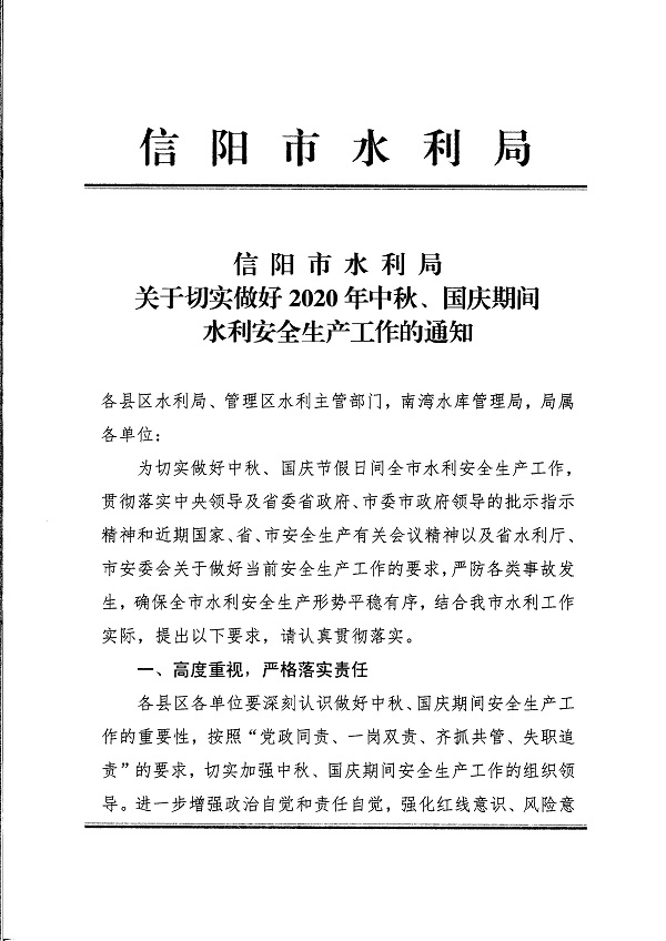 关于切实做好2020年中秋、国庆期间水利安全生产工作的通知