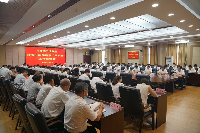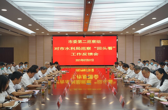 7月7日,信阳市委第二巡察组对市水利局巡察“回头看”工作反馈会在局七楼会议室召开。市纪委监委常委张军家,市委第二巡察组组长石超伟、副组长陈连书,市纪委第五执纪监督室主任何振刚,市委巡察办陈勇以及市委第二巡察组的全体同志出席会议。会议由市委第二巡察组副组长陈连书主持。市水利局党组班子成员、处级干部、机关副科级以上干部、局属单位班子成员及局巡察“回头看”联络组成员共100余人参加了会议。