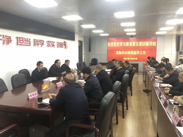 10月22日上午,市委党史学习教育第五巡回指导组组长、市政协二级巡视员刘森一行3人到市水利局调研指导党史学习教育开展情况。市水利局在家班子成员、处级领导,机关科室负责人等30余人参加了座谈会。