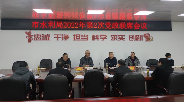 2月7日上午,市水利局召开召开党政联席会议暨节后“收心会”,研究部署近期水利重点工作。局党组书记、局长张雨主持会议并讲话。