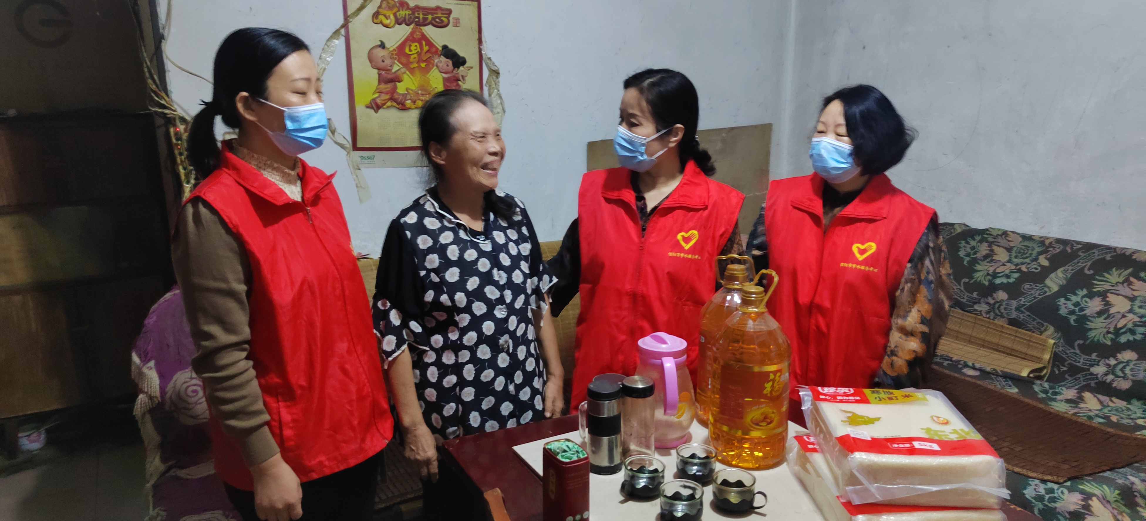 (志愿者们看望慰问社区困难人员杜丽娜)