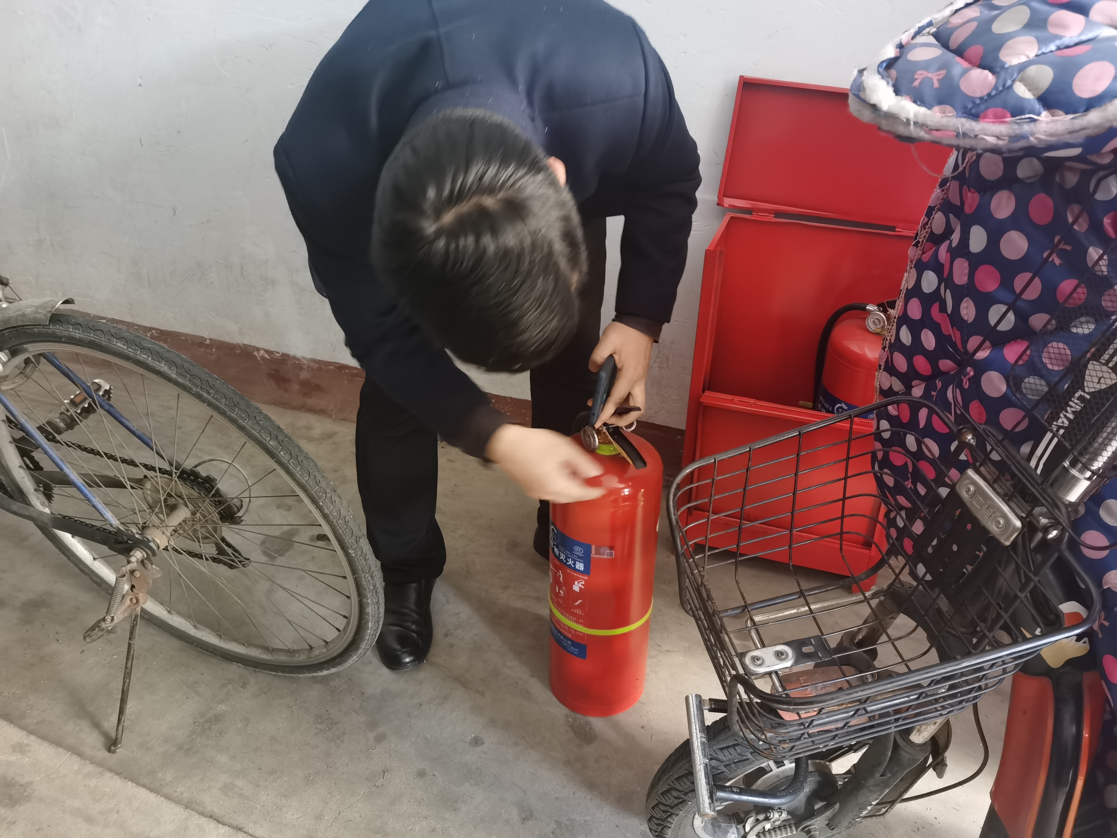 (检查灭火器材使用情况)