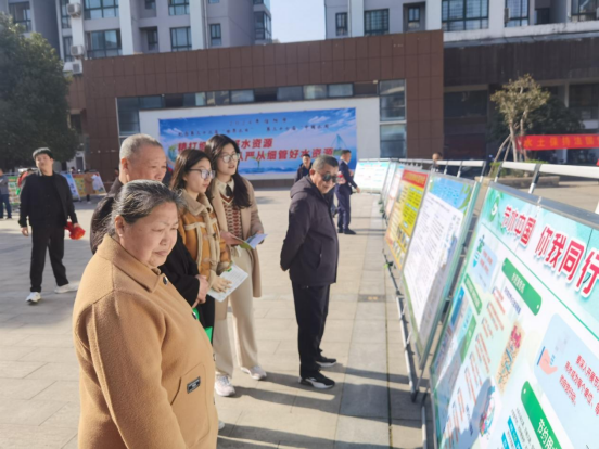 (通过悬挂宣传条幅、摆放宣传展板、发放节水主题宣传资料和小礼品等形式,向居民群众广泛宣传节水法律法规,普及推广日常生活节水技巧、科学用水知识)