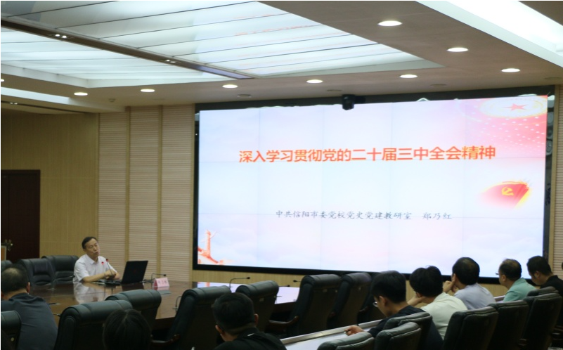 8月29日,市水利局在局七楼会议室,举行学习贯彻党的二十届三中全会精神宣讲报告会,邀请市委宣讲团成员、市委党校党史党建教研部副主任郑乃红教授作专题辅导报告。局党组书记、局长、市河湖事务中心党委书记沈伟主持并讲话。