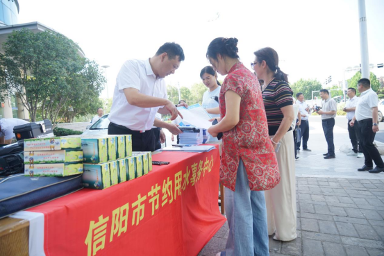 活动中,市节约用水事务中心工作人员在平桥区财政局办公楼前悬挂节水宣传标语、布置节水知识宣讲台,向平桥区财政局职工及来往市民发放宣传彩页和节水小礼品。节水宣传员详细讲解《节约用水条例》和公民节水用水行为规范,结合日常生活中一水多用节水小妙招,与大家深入沟通交流,引导广大群众自觉养成良好的用水习惯,使节水意识深入人心。