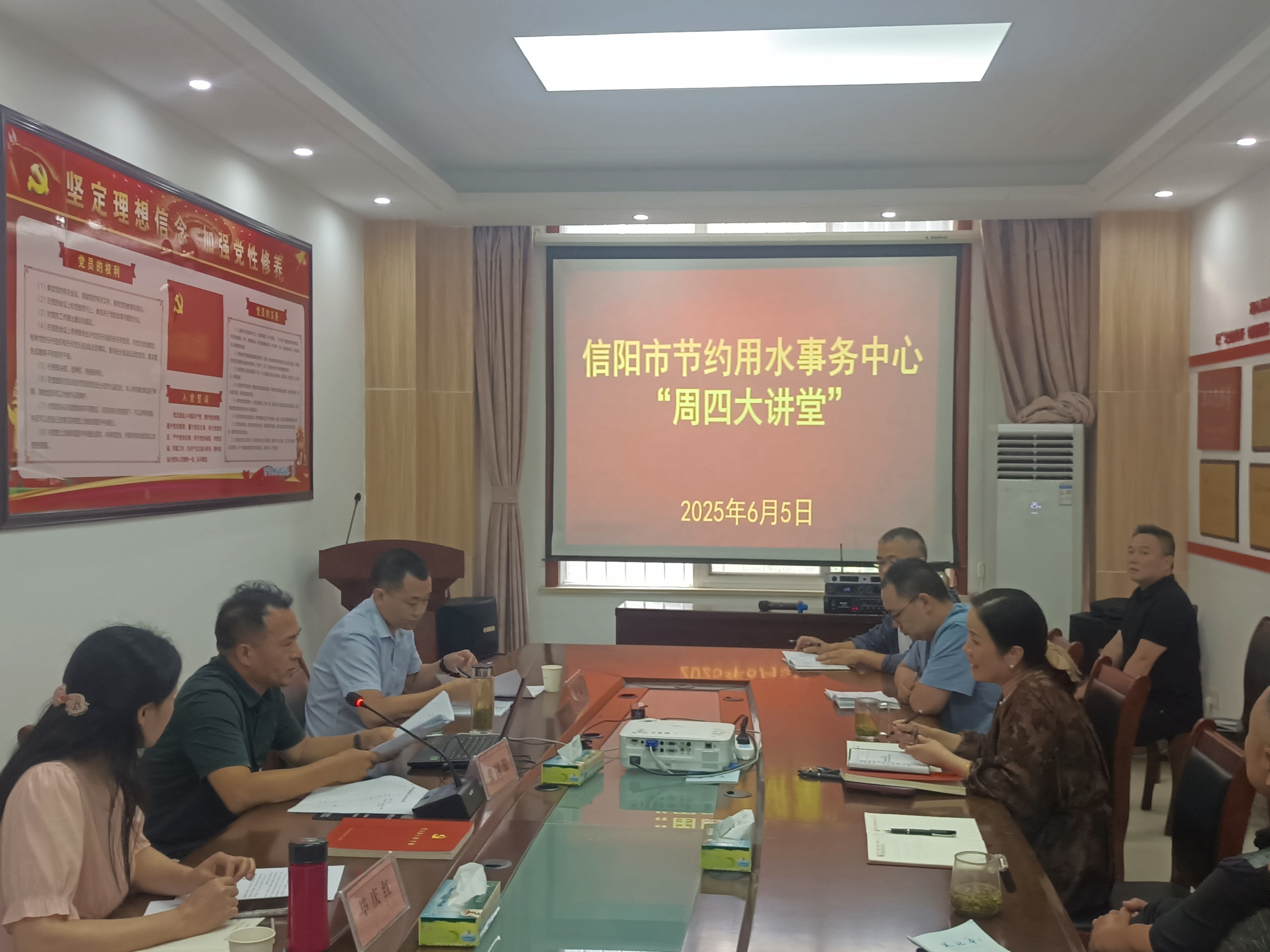 为进一步加强机关党的建设,增强基层党组织政治功能和组织功能,全面提升机关基层党支部标准化、规范化建设水平。6月5日,市直机关工委宣传部张国银同志赴信阳市水利局、市节约用水事务中心党支部开展“周四大讲堂”机关党建业务专题宣讲。市水利局尚辰和市节约用水事务中心党支部全体党员干部参加学习。