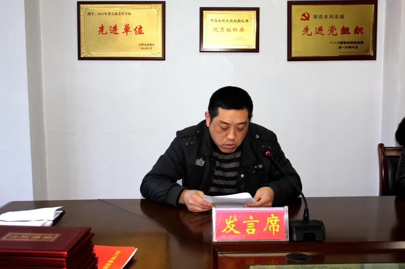 2月22日上午,信阳市节水办召开2017年度工作会议,办党支部班子成员及全办在职职工参加了会议。会议首先传达了全市水利工作会议精神,对节水办2016年度优秀科室、优秀党员、先进工作者进行表彰;优秀代表作了交流发言;各科室向办党支部递交了2017年目标任务保证书。
